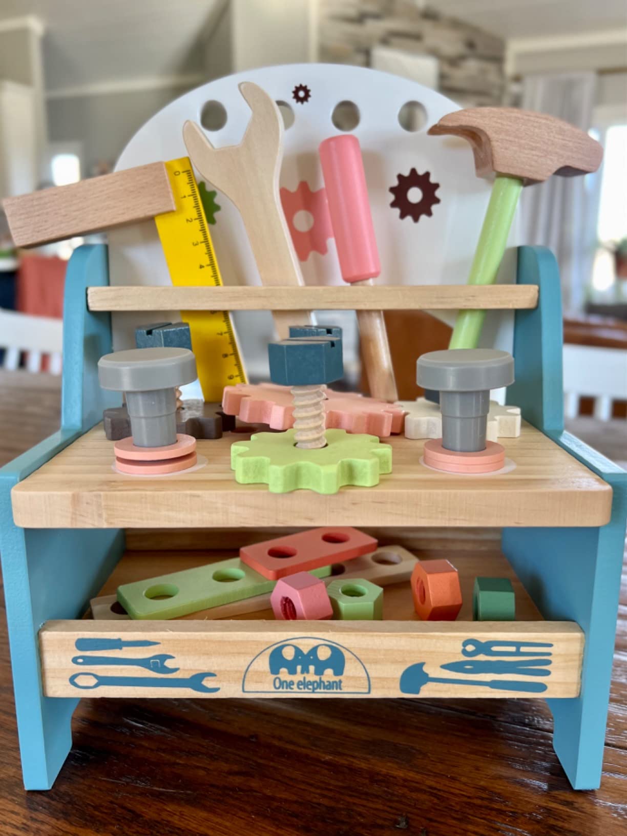Crafted with care and made to withstand years of creative play, the workbench is a long-lasting addition to any playroom. The stable structure offers a safe space for all kinds of imaginative projects, big and small.